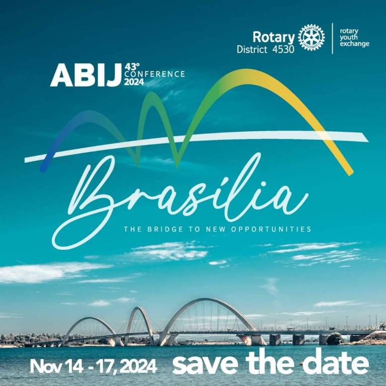 A Associação Brasileira de Intercâmbio de Jovens (ABIJ) organiza a 43ª Conferência, que acontece de 14 a 17 de novembro de 2024, na cidade de Brasília (DF), com o apoio do distrito 4530 do Rotary International. Fazer um intercâmbio é importante em muitos sentidos, principalmente na aquisição de conhecimentos. Como uma ponte de oportunidades que leva os jovens a mudanças, o intercambista passa por um crescimento pessoal e profissional ao conviver com outras culturas, idiomas e tradições. Você está convidado e convidada para participar deste grande encontro, traga e inspire ideias e discussões sobre as formas de tornar o programa de intercâmbio do Rotary um verdadeiro instrumento para a paz e que possa proporcionar a magia de transformar vidas nas comunidades em todo o mundo.