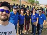 Selfie feita na esquerda por um rapaz jovem de barba, usando camiseta branca, boné e óculos escuros. Atrás dele dois homens nas pontas e três mulheres ao centro; somente a mulher que está bem no centro veste camiseta preta com detalhes amarelos do Rotary e o restante vestem camisetas azuis do Rotary. Todos estão sorrindo.