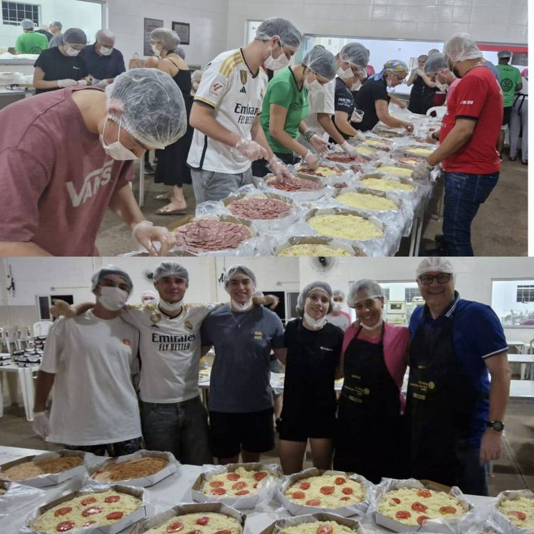 Foram vendidas 1050 pizzas, todas montadas pela Família Rotária, ou seja, teve a participação dos companheiros do clube, Kids, Interactianos, Rotaractianos, intercambistas e convidados.