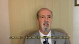 A imagem apresenta um homem de aparência madura, com cabelo grisalho e barba bem aparada. Ele veste um terno cinza claro, uma camisa branca e uma gravata com listras diagonais nas cores azul e preta. No lado esquerdo do paletó, há um pequeno broche ou pin de cor azul. O homem está sentado em uma cadeira, e o fundo é composto por uma parede de madeira clara, com um quadro parcialmente visível no canto superior direito. A expressão facial do homem é séria e atenta, como se estivesse falando ou participando de uma entrevista. Na parte inferior da imagem, há uma legenda em texto amarelo que diz: "para a erradicação da Poliomielite no mundo".