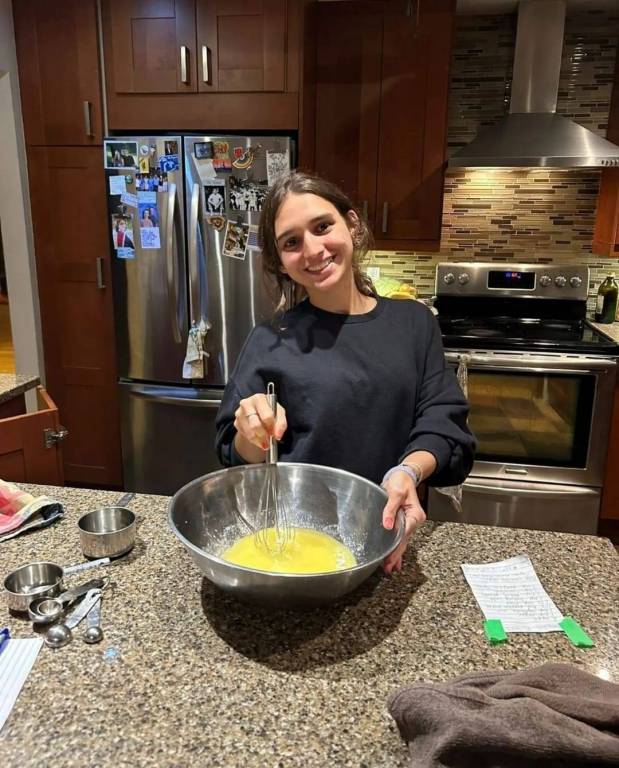 E, Maria Leonor colheu framboesa com seu pai e iniciou aulas de Tênis. E finalizou o dia cozinhando para a família estrangeira.