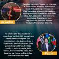 Abaixo uma mascara de mergulho com Mergulho de Oratória ao lado. Abaixo duas esferas com fotos: na esquerda um rapaz sorridente com a palavra Paulo ao lado e na direita uma garota também sorridente com a palavra Aryadne.