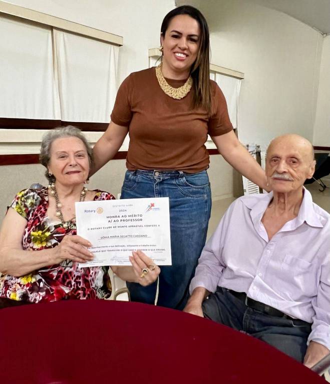 A sequência a homenagem extende aos professores da família rotária: companheiro Odécio, companheira Laura e companheira da Casa da Amizade: Sônia.