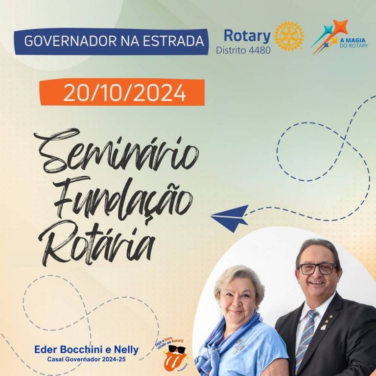O Seminário da Fundação Rotária será neste domingo - 20 de outubro.