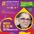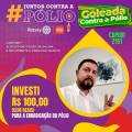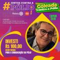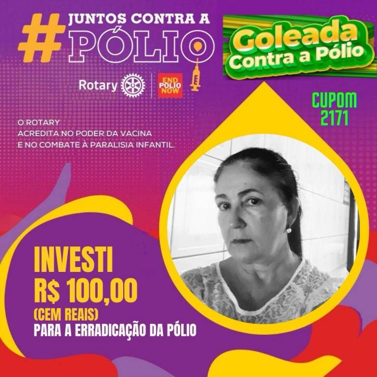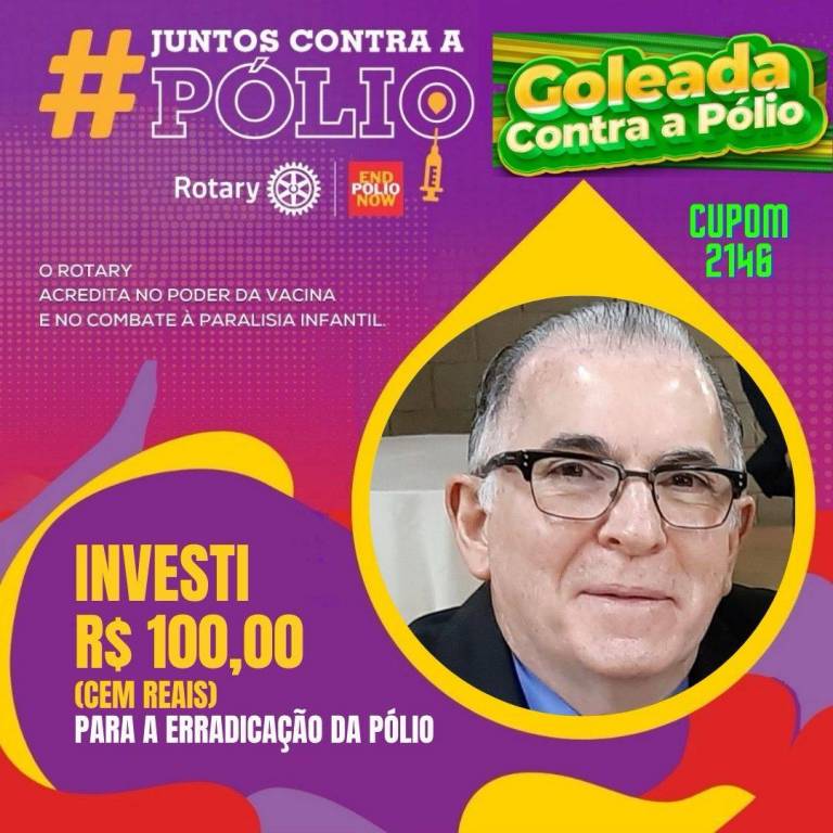 Na parte inferior, em um fundo roxo, está escrito em letras amarelas: "Investi R$ 100,00 (cem reais) para a erradicação da pólio."