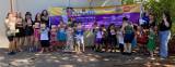 Eles estão à frente de uma grande faixa bastante colorida da campanha # Juntos contra a Pólio.