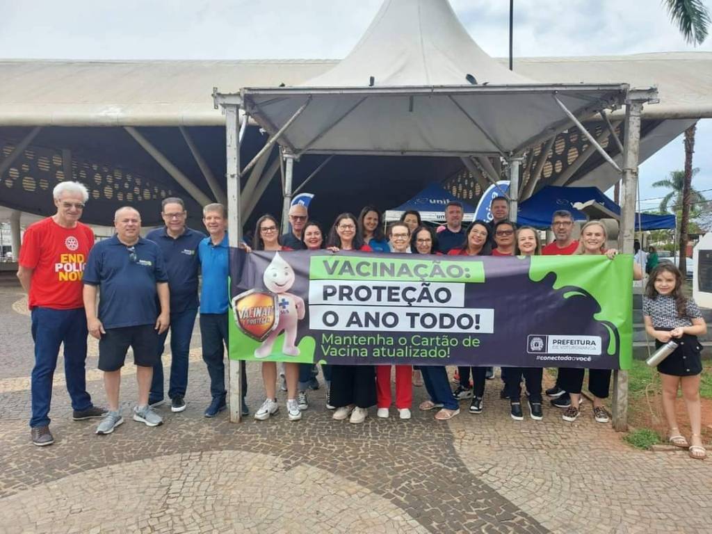 Manhã de sábado de trabalho rotário e conscientização para a necessidade da vacinação contra a poliomielite.