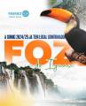 A imagem é um cartaz promocional que anuncia o local da Comic 2024/25. No topo esquerdo, está o logotipo do Interact MDIO Brasil. Abaixo, em letras grandes e laranjas, está escrito "FOZ", e logo abaixo, em letras verdes, "do Iguaçu". No canto superior direito, há a imagem de um tucano com um bico laranja vibrante. Ao fundo, pode-se ver uma paisagem que inclui as Cataratas do Iguaçu e uma vista aérea de uma cidade. O texto principal diz: "A COMIC 2024/25 JÁ TEM LOCAL CONFIRMADO!".