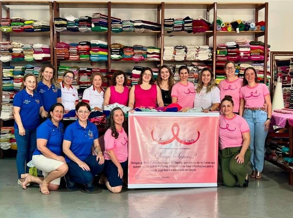 Neste mês de outubro, em apoio ao Outubro Rosa, as instituições Casa da Amizade de Itápolis, Amigas do Peito e Grupo São Pelegrino estiveram, mais uma vez, em parceria com a querida amiga Denir, que nos doou retalhos para serem transformados em lenços e turbantes. Essas peças serão destinadas a hospitais onde há pacientes em tratamento contra o câncer.