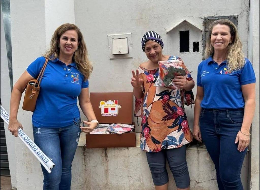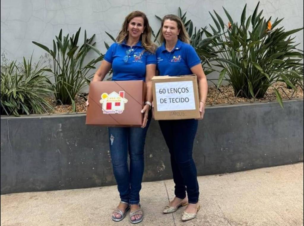 Casa da Amizade de Itápolis com o apoio da Denir Tecidos Realizaram a doação de 60 lenços de cabeça e 35 turbantes ao Hospital Amaral Carvalho de Jaú