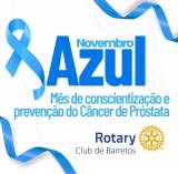 O Rotary Club de Barretos apoia o Novembro Azul e a importância de falar sobre a prevenção do câncer de próstata e no rastreamento de homens na faixa etária dos 50 a 70 anos ou dos 45 a 70 anos em pacientes com histórico de câncer de próstata na família.