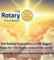 O mês de novembro é conhecido como o “Mês da Fundação Rotária” no Rotary International. Durante este mês, os rotarianos em todo o mundo são incentivados a aprender mais sobre a Fundação Rotária e apoiar seus programas, que visam projetos humanitários, educacionais e iniciativas para promover a paz e melhorar a qualidade de vida das comunidades.