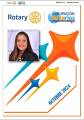 Card fundo branco trás um contorno fino em laranja. Acima fora do contorno temos a palavra Rotary em azul e a roda rotária em amarelo e logo ao lado o símbolo do Agrupación Rotarios Latinos, que traz no fundo à esquerda um globo terrestre e no final à direita duas mãozinhas espalmadas.