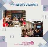 A imagem mostra um cartaz da "10ª Reunião Ordinária" do Rotaract Club de São José do Rio Preto Integração. Há duas fotos principais no cartaz.
