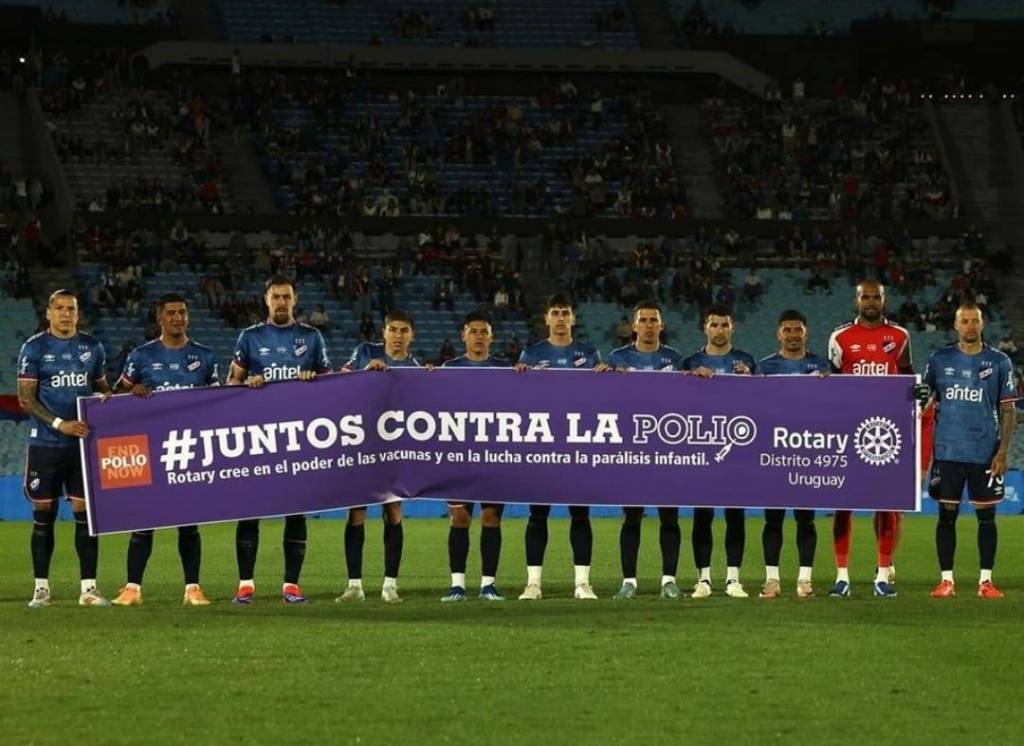 Durante a partida da 1ª Divisão Uruguaia que aconteceu na noite de 8 de novembro, pela 11ª etapa do Torneio Clausura 2024, os jogadores do Club Nacional de Football entraram em campo exibindo a faixa da campanha Juntos Contra a Pólio, no jogo com o time Racing Club de Montevideo, no Estádio Centenário.