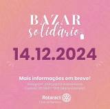 A imagem é um anúncio para um bazar solidário. O texto na imagem diz: