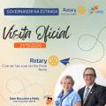 A imagem é um pôster promocional para uma visita oficial do governador do Rotary Distrito 4480. O evento está agendado para o dia 18 de novembro de 2024. O pôster inclui o seguinte texto: