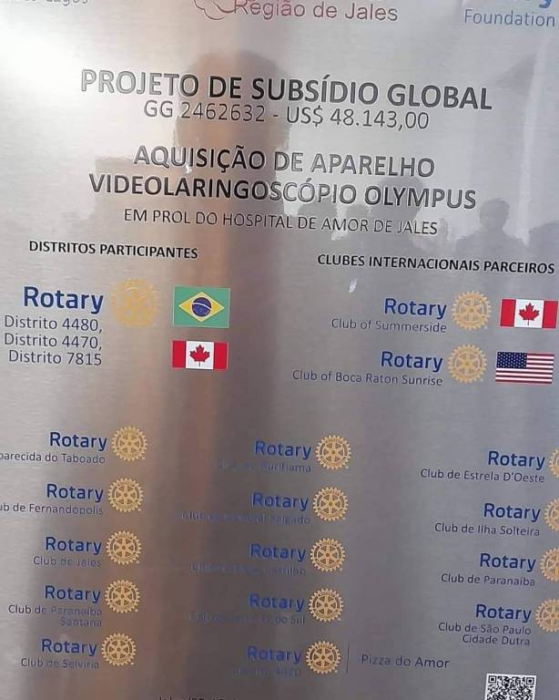 Na tarde da última Segunda-feira, 18 de novembro de 2024 foi realizado a entrega do equipamento videolaringoscópio ao HOSPITAL DE AMOR de Jales do Projeto de Subsídio Global 2462632 do Rotary Club de Jales - Grandes Lagos com parceria de mais 14 clubes sendo um deles o Rotary Club de General Salgado, nosso clube foi representado pelos Companheiros Denis Mendonça e Ivo Souza Guimarães.