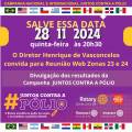 No centro, em destaque, está escrito "SALVE ESSA DATA 28 11 2024 quinta-feira às 20h30". Logo abaixo, em amarelo, lê-se "O Diretor Henrique de Vasconcelos convida para Reunião Web Zonas 23 e 24". Em seguida, há uma faixa roxa com o texto "Divulgação dos resultados da Campanha JUNTOS CONTRA A PÓLIO".