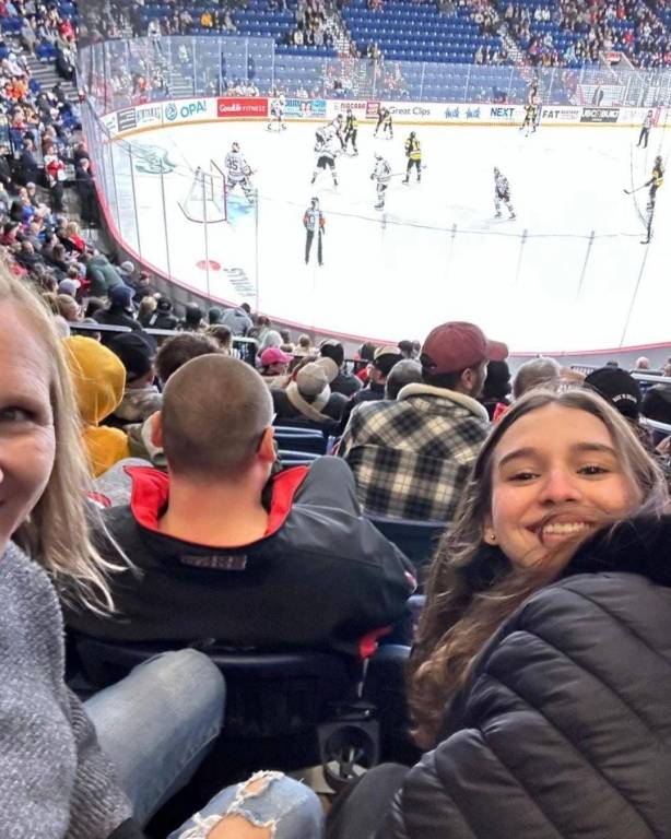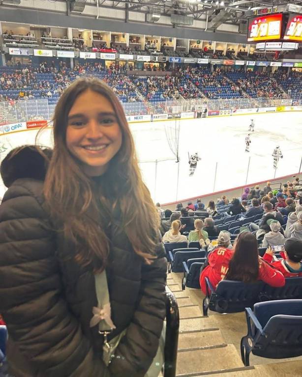 Intercambista Maria Leonor assisti jogo de Hockey com sua família hospedeira canadense