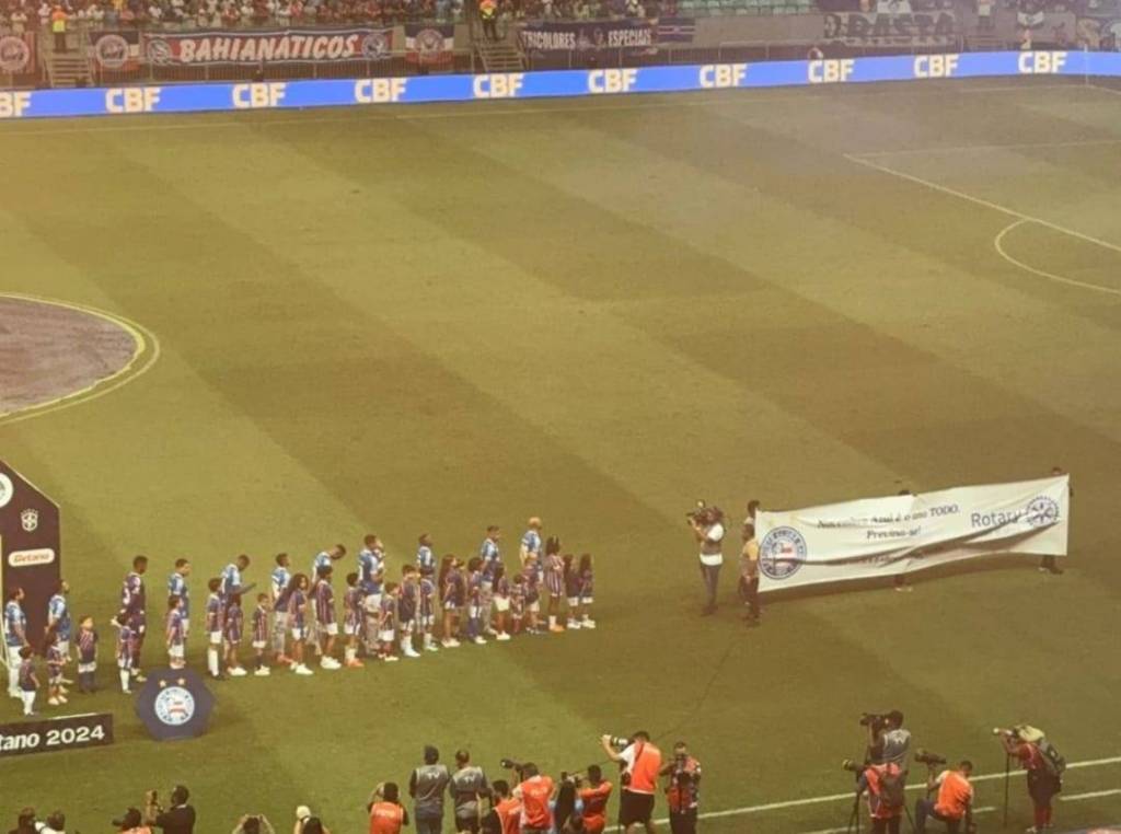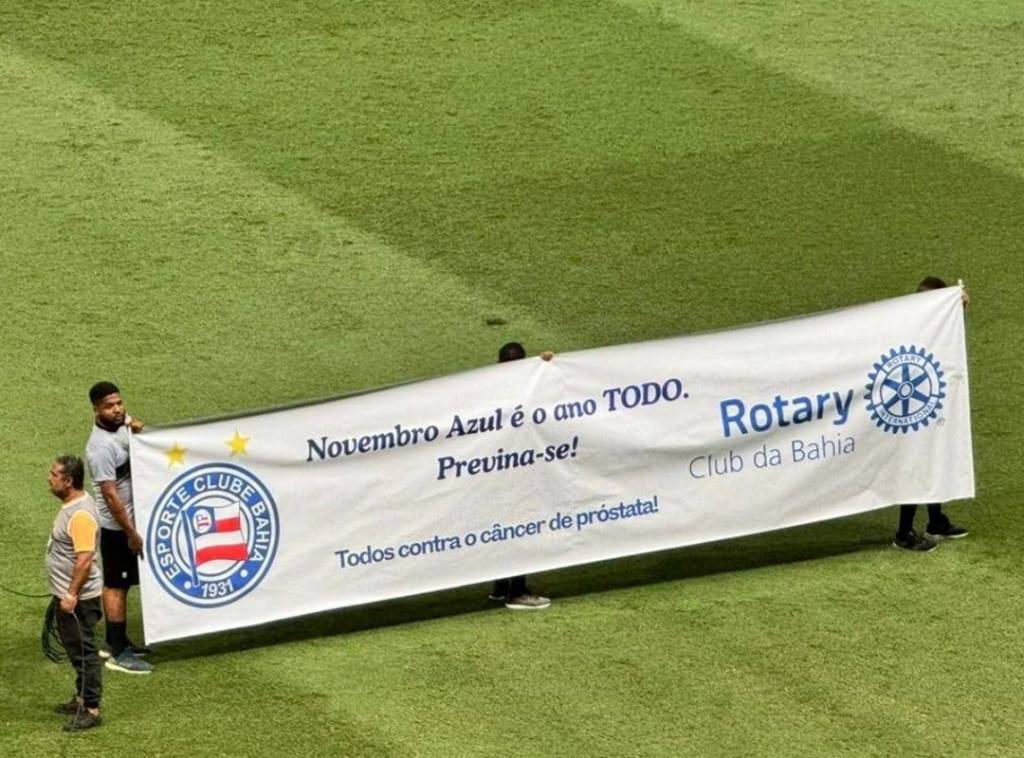 Na noite de quarta 20/11, durante o jogo Bahia x Palmeiras, pela 34ª rodada do campeonato Brasileirão Série A 2024, o Rotary Club da Bahia (distrito 4391) conseguiu a oportunidade de entrar em campo com uma faixa do movimento mundial Novembro Azul para reforçar a importância do diagnóstico precoce do câncer de próstata. A campanha promovida pelo clube recebeu o apoio dos jogadores e das equipes, sendo exibida com destaque aos torcedores no estádio Arena Fonte Nova em Salvador.