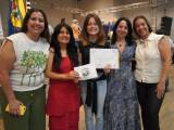 A cerimônia contou com a participação da Secretária de Educação, Drª Cláudia Cosmo, e da Diretora da Secretaria, Elis Regina da Silva.