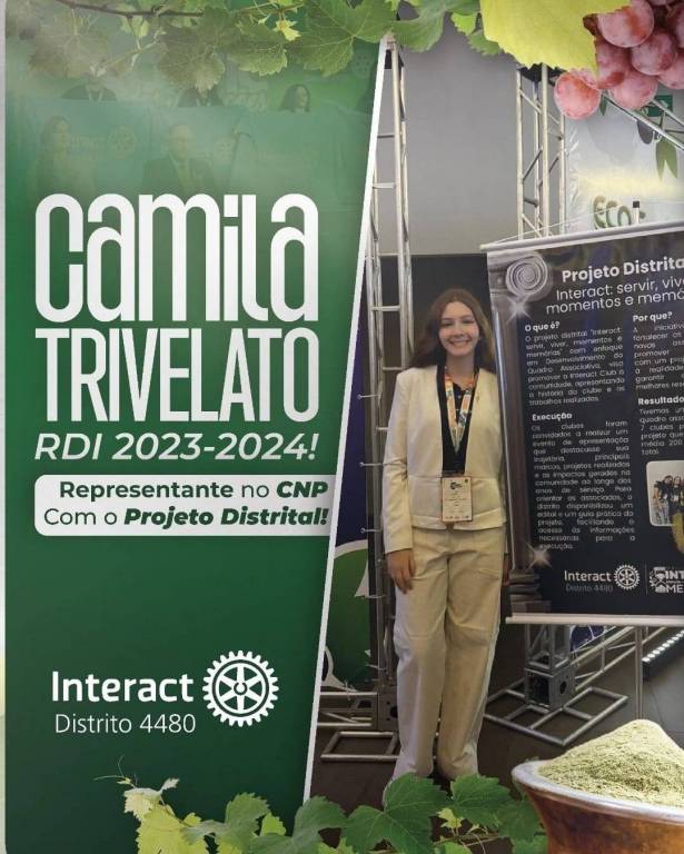 Nossa DIVA RDI 2023-2024, a maravilhosa Camila Trivelato, representou o distritão 4480 com todo o orgulho e também levou o nosso Projeto Distrital 23-24 pro Concurso Nacional de Projetos. Mas não para por aí, tchê! O baita orador e também atual Pres. do Interact Club de São José do Rio Preto - Integração Norte, Samuel Wesley, tá defendendo o nosso distrito com garra no Concurso Nacional de Oratória da MDIO Interact Brasil!